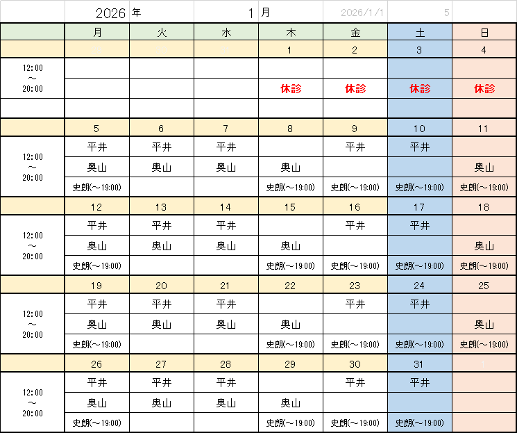 急な出張等により予告なくシフトの変更がある場合がございます。